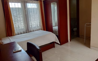 Kamar Deluxe kami menawarkan kenyamanan maksimal dengan desain nyaman seperti di rumah sendiri dan fasilitas lengkap untuk pengalaman menginap yang menyenangkan.